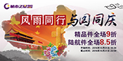 ? 活動(dòng)詳情: 城市之星物流,成立并經(jīng)營(yíng)至今二十載有余,為感恩回饋廣大新老客戶,特推出精品件全場(chǎng)9折,陸航件全場(chǎng)8.5折的優(yōu)惠酬賓活動(dòng),借此國(guó)慶之際,與國(guó)同慶,與天同樂(lè)。 一、活動(dòng)主題: 城市之星 風(fēng)雨同在 與國(guó)同慶 二、活動(dòng)時(shí)間: &...